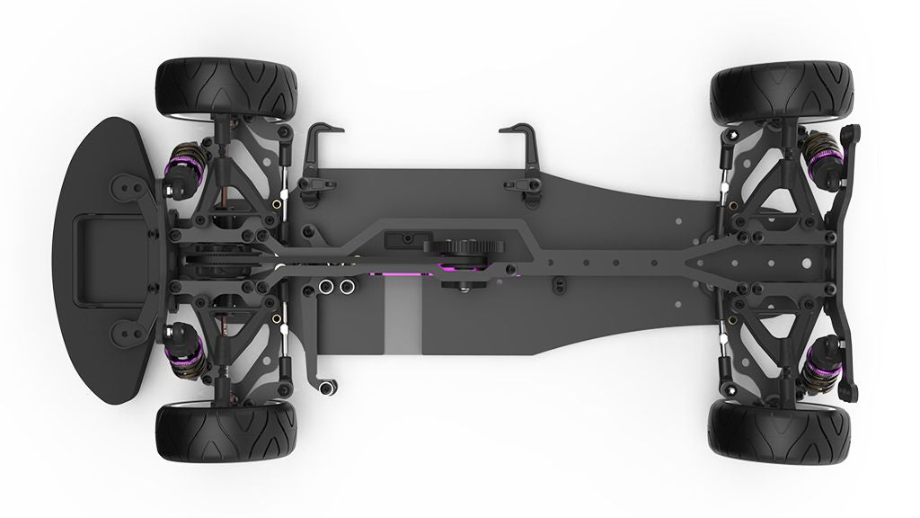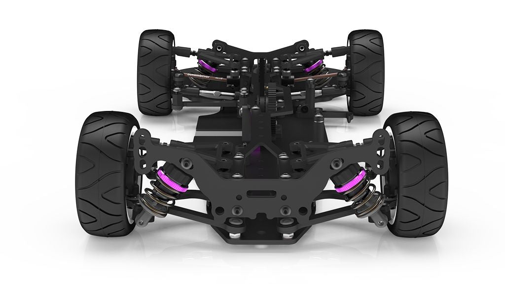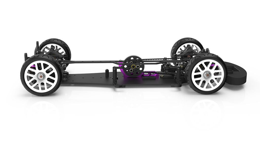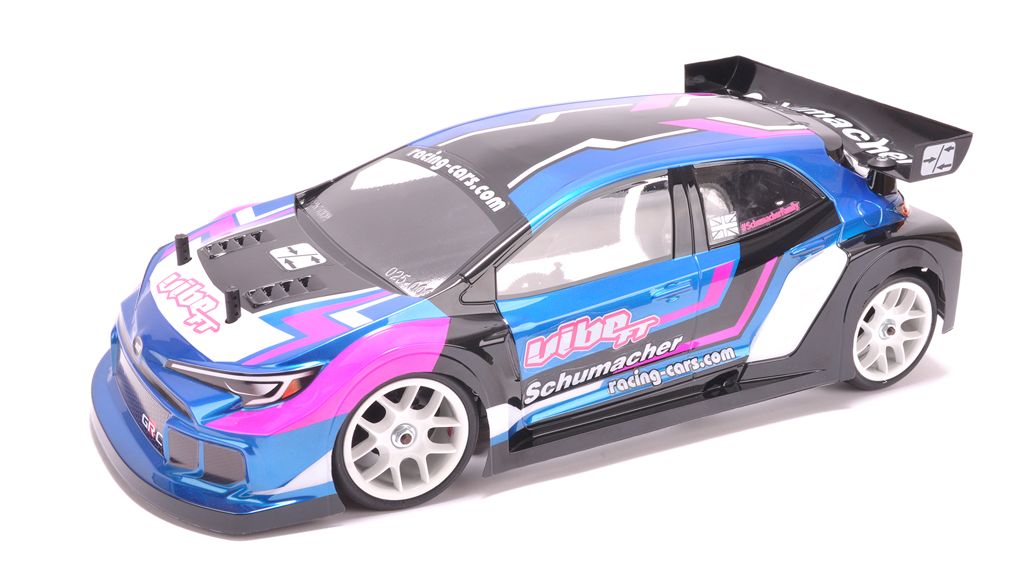 The Vibe FT is built to be durable, consistent, and easy to maintain. Alloy shocks with purple anodised adjusters, UJ driveshafts, and purple alloy transmission components come as standard equipment. The strong yet flexible S2 chassis and top deck deliver confident handling and allow the Vibe FT to be tuned for any track surface. The Schumacher Vibe FT, find your line and drive to win.